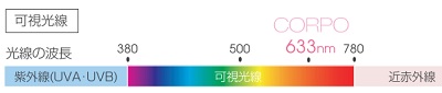 CORPOが発する赤色の光は、最先端の光源LED(発光ダイオード)を使用した633nmの可視光線です。