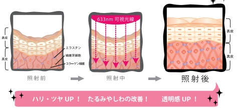 特に633nmの赤色の光は、エイジングケアに適した光と言われています。